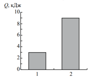 Задание 8. На диаграмме для двух тел одинаковой массы, обозначенных цифрами «1» и «2», приведены значения количества теплоты Q, необходимого для их нагревания на одно и то же число градусов. Найдите отношение удельной теплоёмкости с2 вещества, из которого состоит тело «2», к удельной теплоёмкости с1 вещества, из которого состоит тело «1».