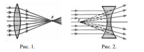 Если лучи, параллельные главной оптической оси линзы, после преломления на сферических поверхностях пересекаются в фокусе линзы, то такую линзу называют (Б)_.