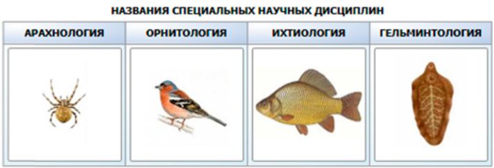 Задание 1. Рассмотрите изображения организмов, относящихся к Царству Животные. Распределите изображения организмов по соответствующим названиям специальных научных дисциплин зоологии: для этого переместите изображения с помощью компьютерной мыши в соответствующие строки таблицы