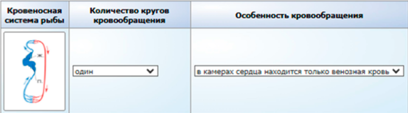 Заполните пустые ячейки таблицы, перетащив изображение сердца рыбы с помощью компьютерной мыши в соответствующую ячейку, и ответьте на вопросы, используя выпадающие списки в каждой ячейке.