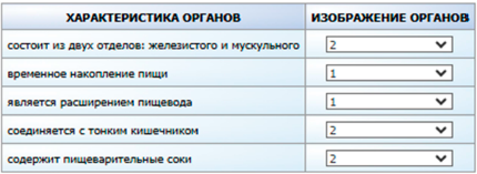 Задание 20. Установите соответствие между характеристиками органов птицы и их изображением, обозначенным на рисунке цифрой 1 или 2: для каждой позиции из первого столбца подберите соответствующую позицию из выпадающего списка.