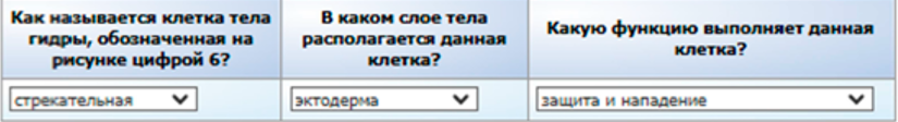 Ответьте на вопросы, используя выпадающие списки в каждой ячейке таблицы.