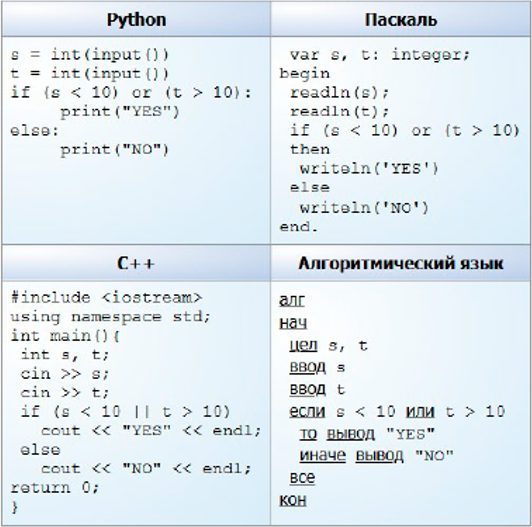 Задание 9. Ниже приведена программа, записанная на четырёх языках программирования.