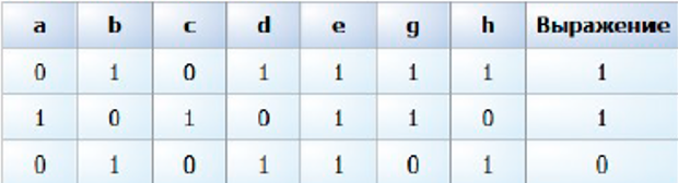 Задание 6. Дан фрагмент таблицы истинности выражения F: