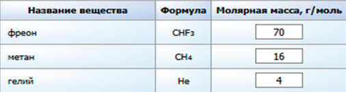 Задание 3. В таблице приведены названия и химические формулы некоторых газообразных веществ.