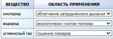 Задание 8. Установите соответствие между веществом и областью его применения: к каждой позиции из первого столбца подберите соответствующую позицию из выпадающего списка.
