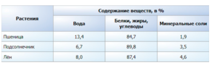 Задание 8. Проанализируйте таблицу «Состав семян растений».