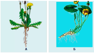 После этого Ольга рассмотрела гербарий и сделала рисунки растений одуванчика лекарственного (А) и кубышки жёлтой (Б).