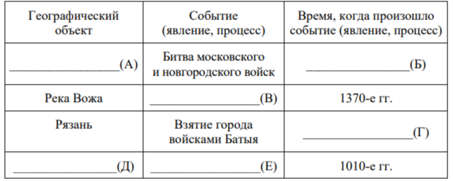 Задание 4. Заполните пустые ячейки таблицы, используя приведённый ниже список пропущенных элементов: для каждого пропуска, обозначенного буквой, выберите номер нужного элемента.