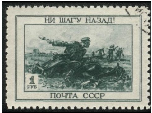 Задание 8. Рассмотрите изображение и выполните задание. Заполните пропуск в предложении: «Приказ наркома обороны СССР, слова из которого приведены на марке, был издан в тысяча девятьсот _ году». Ответ запишите словом (словосочетанием).