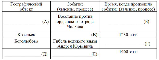 Задание 4. Заполните пустые ячейки таблицы, используя приведённый ниже список пропущенных элементов: для каждого пропуска, обозначенного буквой, выберите номер нужного элемента.