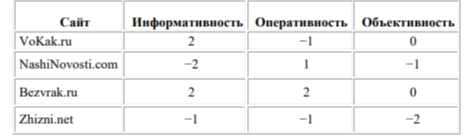 В таблице даны оценки каждого показателя для нескольких новостных сайтов. Определите наивысший рейтинг новостных сайтов, представленных в таблице. Запишите его в ответ, округлив до целого числа.