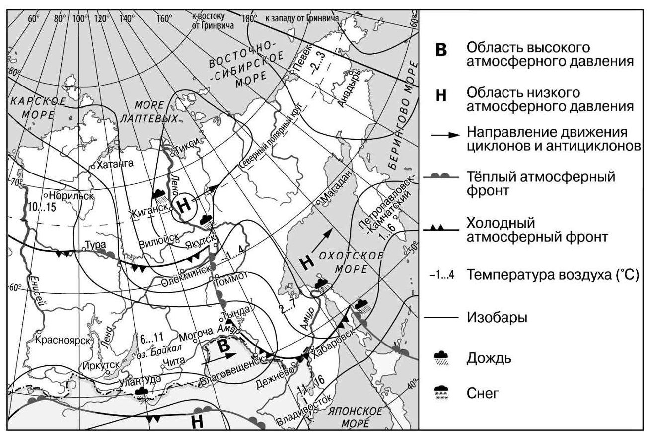 Задания 5 и 6 выполняются с использованием приведённой ниже карты погоды.