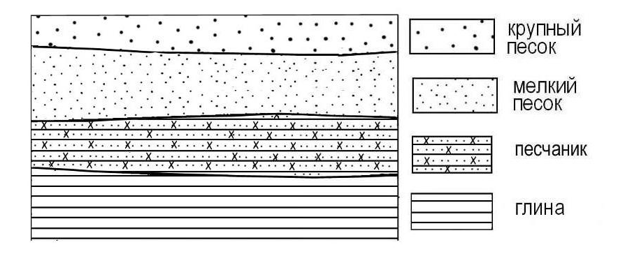 Задание 8. Во время экскурсии учащиеся сделали схематическую зарисовку залегания горных пород на обрыве в карьере.