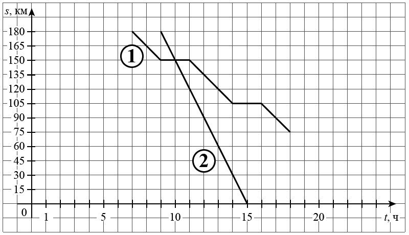 На рисунке график движения велосипедиста обозначен цифрой 1, график движения автобуса обозначен цифрой 2 и приведён не полностью.