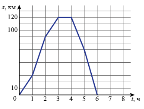 Задание 4. Автобус выехал из пункта А, прибыл в пункт Б, пробыл там некоторое время и вернулся обратно в пункт А. График показывает расстояние от автобуса до пункта А в каждый момент времени.