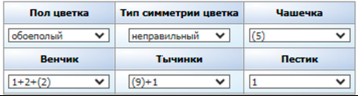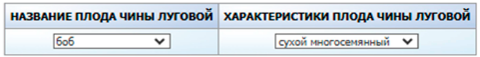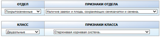 Используя выпадающие списки, определите к какому отделу и классу относят растение чина луговая, а также выберите признаки этих отдела и класса.