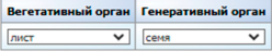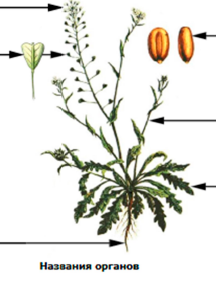 Выберите, используя выпадающие списки, в таблице по одному любому примеру вегетативного и генеративного органов растения пастушья сумка.