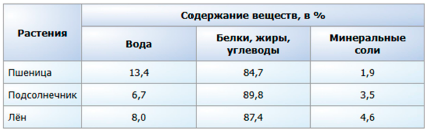 Задание 17. Проанализируйте таблицу «Состав семян растений».