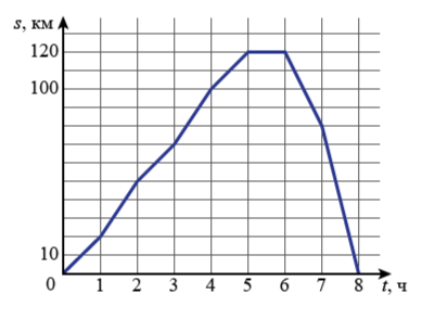 Задание 4. Автобус выехал из пункта А, прибыл в пункт Б, пробыл там некоторое время и вернулся обратно в пункт А. График показывает расстояние от автобуса до пункта А в каждый момент времени. Расстояние измеряется в километрах, время – в часах. Найдите среднюю скорость автобуса на пути из А в Б (в км/ч).