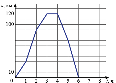 Задание 4. Автобус выехал из пункта А, прибыл в пункт Б, пробыл там некоторое время и вернулся обратно в пункт А. График показывает расстояние от автобуса до пункта А в каждый момент времени. Расстояние измеряется в километрах, время – в часах. Найдите среднюю скорость автобуса на пути из А в Б (в км/ч).