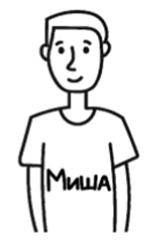 Задание 10. Миша написал на футболке своё имя (см. рисунок). Затем он подошёл к зеркалу. Нарисуй, как будет выглядеть отражение его имени в зеркале.