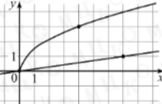 Задание 5. На рисунке изображены графики функций f(x)=a√x и g(x) =kx, которые пересекаются в точке (0; 0) и в точке A. Найдите абсциссу точки A.