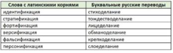 Задание 9. В левой колонке таблицы даны слова, образованные сложением двух латинских корней, а в правой – их буквальные переводы в перепутанном порядке.
