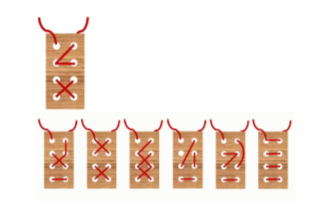 Задание 3. Петя взял длинный шнурок и дощечку с 8 дырочками. Он продел шнурок в дырочки так, что с одной стороны дощечки у него получился рисунок, показанный на картинке справа. Как могла выглядеть противоположная сторона дощечки, если никакую линию на каждой из указанных картинок он не проводил шнурком дважды (проводить линию одновременно с обеих сторон можно)?