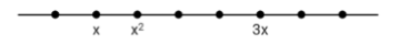 Задание 1. На прямой отмечены точки, расстояния между любыми двумя соседними отмеченными точками равны. Известно, что три из этих точек имеют координаты x,x2 и 3x, как показано на рисунке. Чему равно расстояние между двумя соседними отмеченными точками?