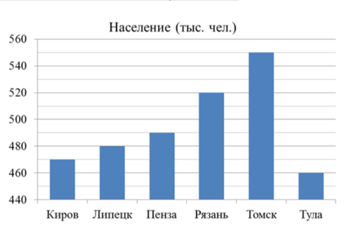 Задание 4. На диаграмме представлены данные о численности населения некоторых крупных городов России (в тыс. чел.). Первое место по населению занимает город Томск.