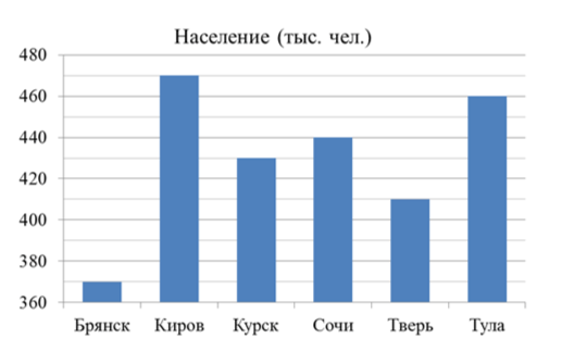 Задание 4. На диаграмме представлены данные о численности населения некоторых крупных городов России (в тыс. чел.). Первое место по населению занимает город Киров.