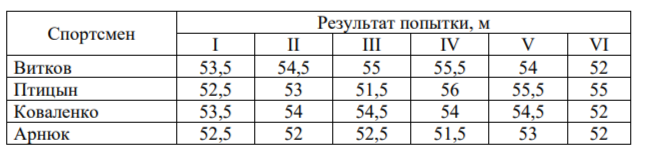 Задание 3. Результаты соревнований по метанию молота представлены в таблице.