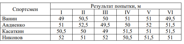 Задание 3. Результаты соревнований по метанию молота представлены в таблице.