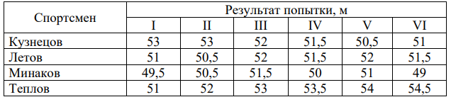 Задание 3. Результаты соревнований по метанию молота представлены в таблице.