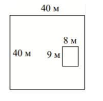 Задание 10. Дачный участок имеет форму квадрата, сторона которого равна 40 м. Дом, расположенный на участке, имеет на плане форму прямоугольника, стороны которого равны 9 м и 8 м. Найдите площадь оставшейся части участка, не занятой домом. Ответ дайте в квадратных метрах.