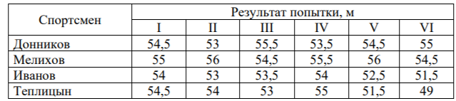 Задание 3. Результаты соревнований по метанию молота представлены в таблице.
