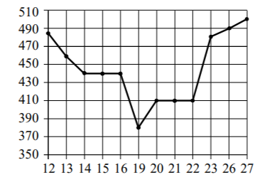 Задание 7. На рисунке показана цена акции компании на момент закрытия биржевых торгов во все рабочие дни в период с 12 по 27 марта 2012 года. По горизонтали указываются числа месяца, по вертикали — цена акции в рублях за штуку. Для наглядности точки соединены ломаной линией.