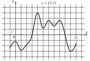 Задание 8. На рисунке изображён график функции y = f(x), определённой на интервале (−1;11). Найдите количество точек, в которых производная функции f (x) равна нулю.