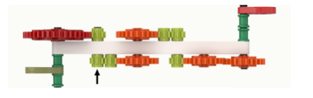 Задание 3. Из шестерёнок с 8, 24 и 40 зубьями собрали передачу. Отметьте шестеренки, которые вращаются с той же частотой, что и указанная стрелкой.