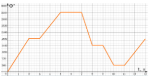 Задание 5. Робот с колёсами одинакового диаметра, равного 55 см, движется прямолинейно. Изменение угла поворота оси колеса робота представлено на графике.