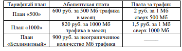 Задание 5. В квартире планируется подключить интернет. Предполагается, что трафик составит 650 Мб в месяц, и исходя из этого выбирается наиболее дешёвый вариант. Интернет-провайдер предлагает три тарифных плана.