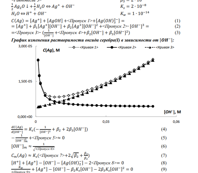 Химик Колбочкин нашёл в архивах старые записи ученого, пытавшегося охарактеризовать химические равновесия в водной суспензии оксида серебра(I).