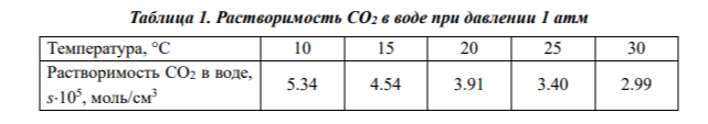 Растворение углекислого газа в воде играет важную роль не только в пищевой промышленности, но и в формировании всей экосистемы Земли. Изучим этот процесс с точки зрения термодинамики и кинетики. В табл. 1 приведены экспериментальные данные.