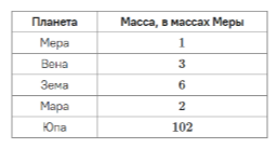 Задание 2. В таблице приведены массы планет системы Сола.
