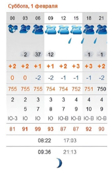 Задание 5. Дан снимок экрана с прогнозом погоды в Москве на 11 февраля.