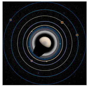 Задание 9. Известно, что радиус орбиты одного из спутников равен 185500 км. Отметьте на рисунке этот спутник.