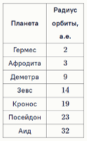 Задание 14. В некоторой далёкой планетной системе произошёл «парад планет»: все планеты оказались расположены на одной прямой. Орбиты всех планет круговые; их радиусы, выраженные в астрономических единицах (а. е.), приведены в таблице.