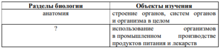Задание 1. Рассмотрите таблицу «Биология – комплексная наука» и заполните пустую ячейку, выбрав соответствующий термин.