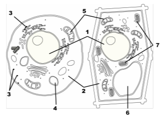 Задание 7. Какой цифрой на рисунке обозначена структура клетки, участвующая во внутриклеточном пищеварении?